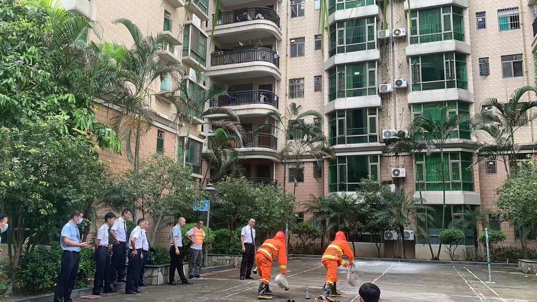 2022年8月30日16:00点整,一阵急促的消防铃声从石湾镇丽湾花园丽悦阁1号楼羽毛球场传出,随后只见一排排手持消防器材的队伍井然有序的冲入现场……